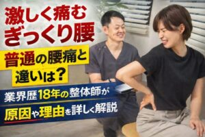 激しく痛むぎっくり腰。普通の腰痛との違いは?業界歴18年の整体師がぎっくり腰の原因や理由を詳しく解説します。