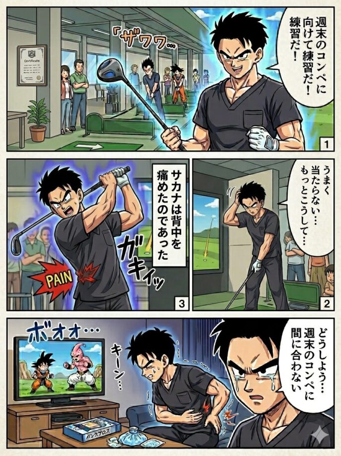 かく言う私もゴルフの練習を頑張っていた時は、週に3回ほど練習場に通い、多い時は200球以上打ち込むなんてことを繰り返し、背中を痛めた経験があります。