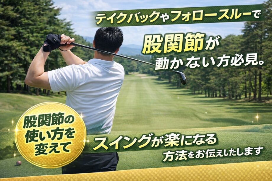 ゴルフ2026年3月13日テークバックやフォロースルーで股関節が思うように動かない方必見。股関節の使い方を変えてスイングが楽になる方法をお伝えいたします。