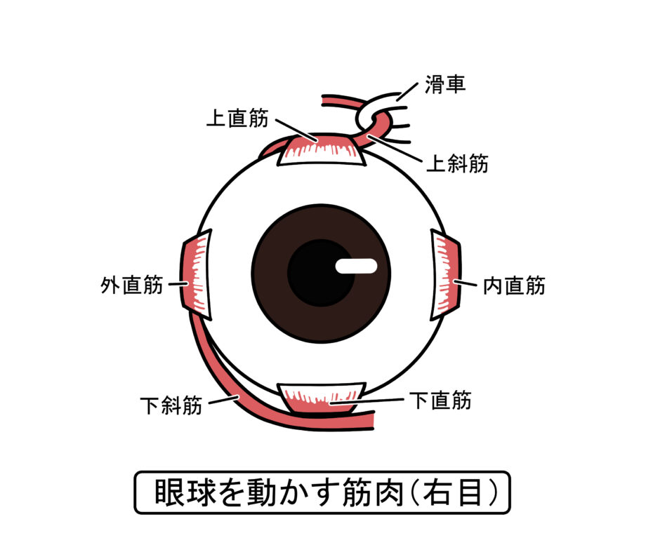 眼球を動かしているのは「外眼筋」と呼ばれる6本の筋肉です。