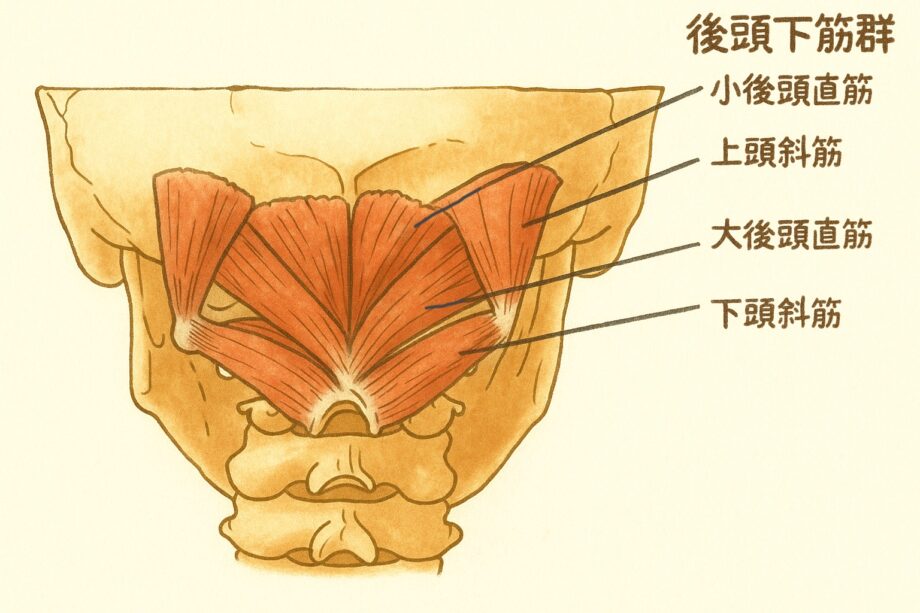 とくに後頭下筋群には、頭の位置や筋肉の緊張を感じ取るセンサーが豊富に存在する重要な部位です。