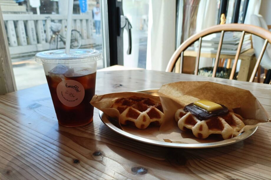 今朝は昨日たまたま知り合った下谷神社近くのワッフル屋さん「fwaffle!」さんに行ってきました。